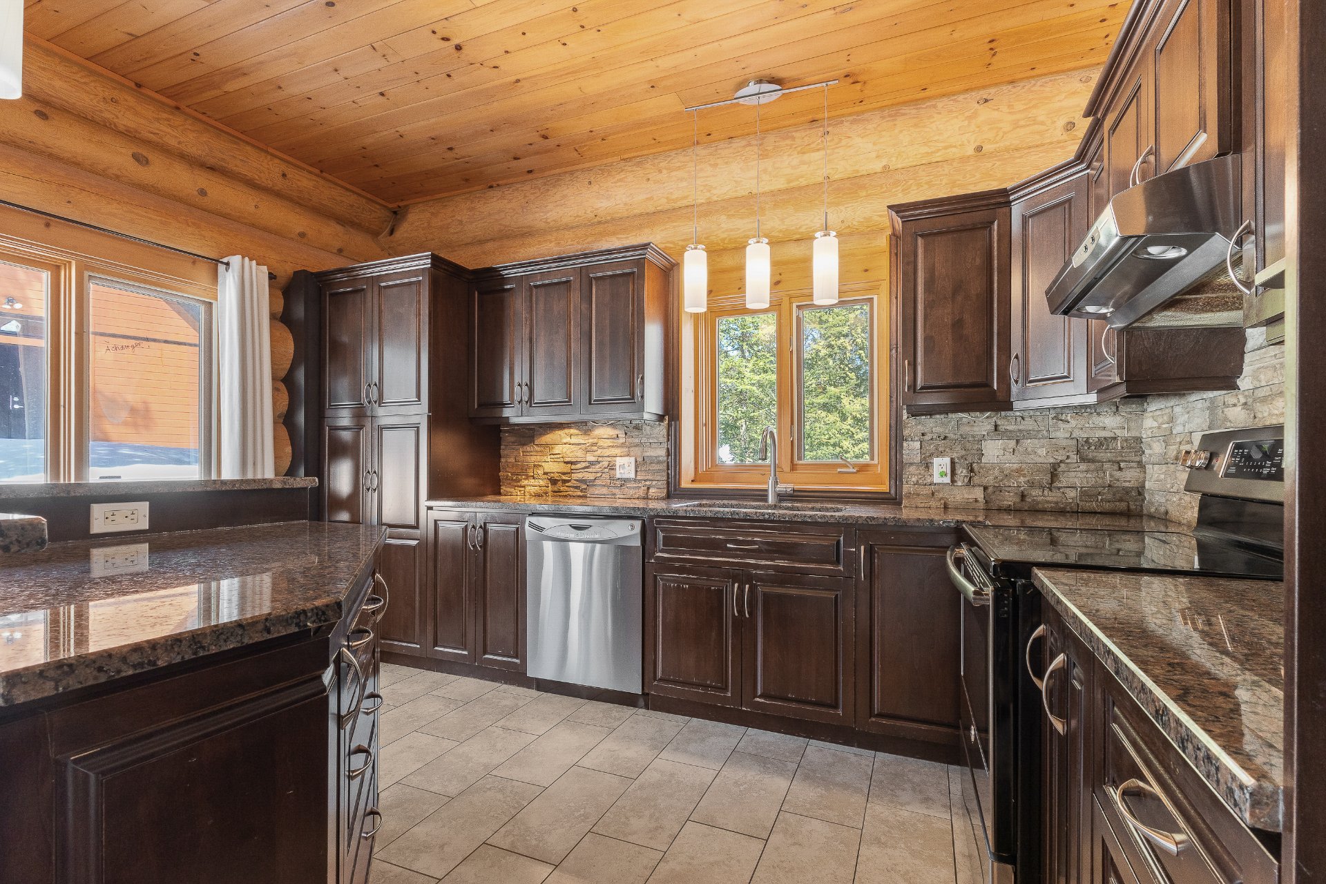 Découvrez le 1939 Ch. des Villas, une propriété haut de gamme au cachet unique, rare sur le marché avec son étage complet en bois rond. Offrant 5 chambres et 1 bureau, dont 4 à l'étage, elle propose un espace idéal pour une grande famille. Sa fenestration abondante baigne les pièces de lumière naturelle. Implantée sur un terrain boisé de plus de 21 800 pi², elle assure une intimité totale. Garage intégré. Située dans un secteur recherché de Chicoutimi, près de tous les services. Toiture en tôle durable et système de géothermie offrant confort et efficacité énergétique.