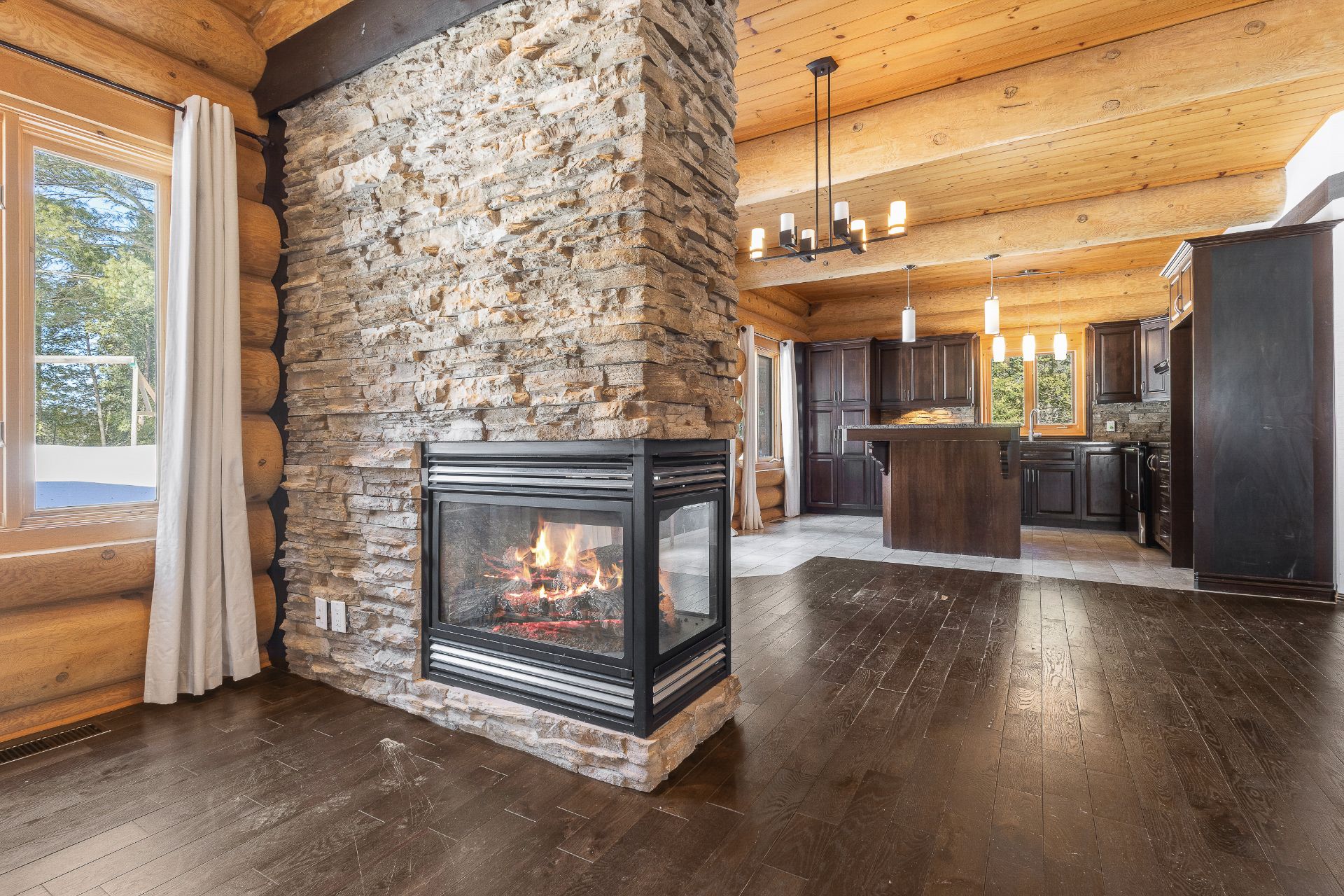 Salon: Spacieux et baigné de lumière naturelle grâce à une fenestration généreuse, le salon se distingue par son foyer au propane, créant une ambiance chaleureuse et conviviale, parfaite pour les soirées en famille ou entre amis.