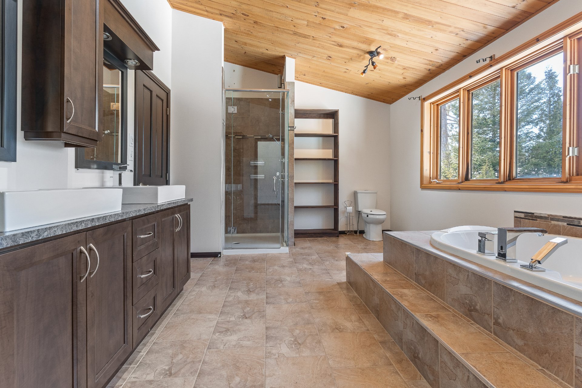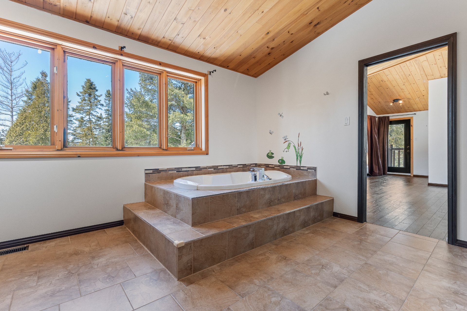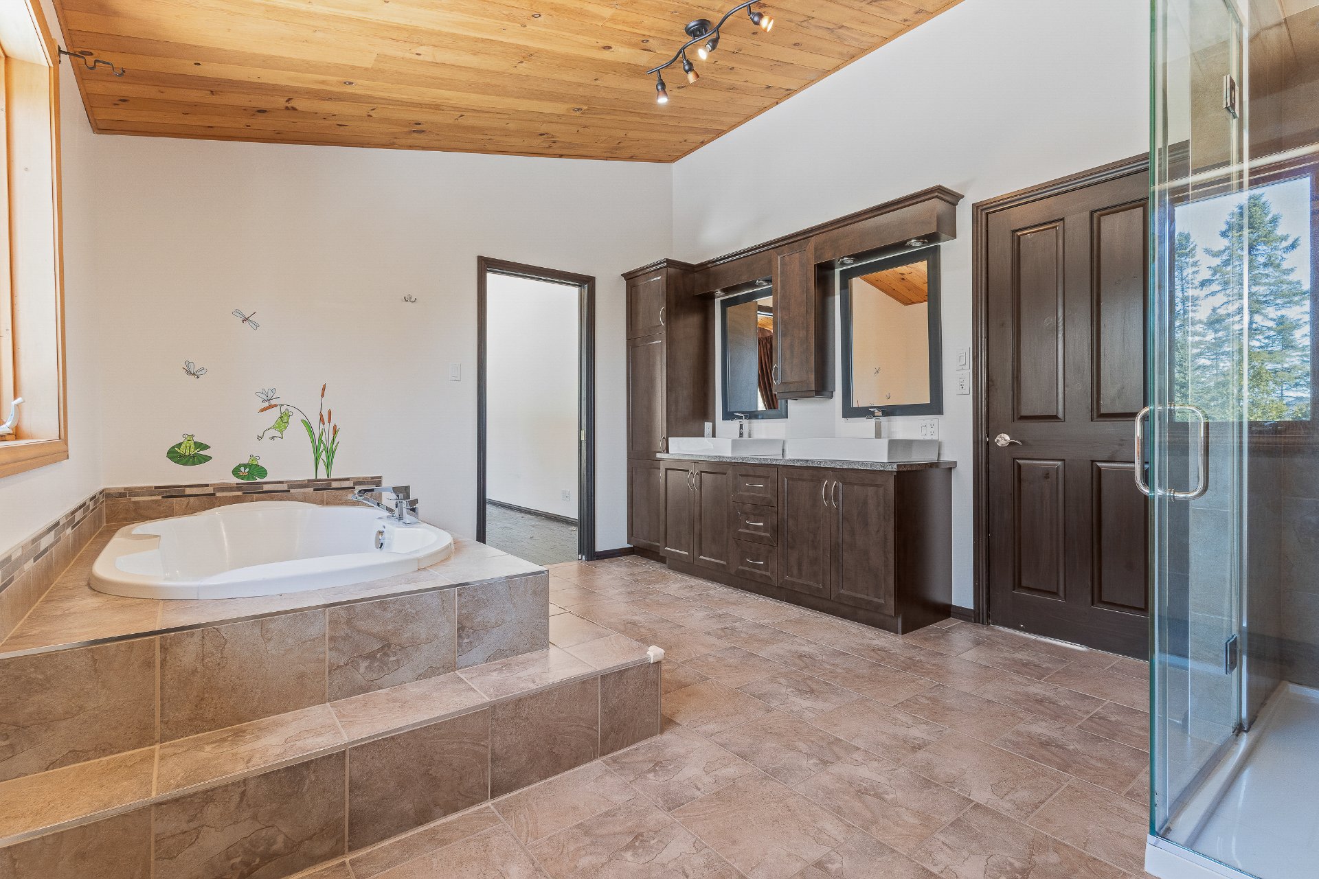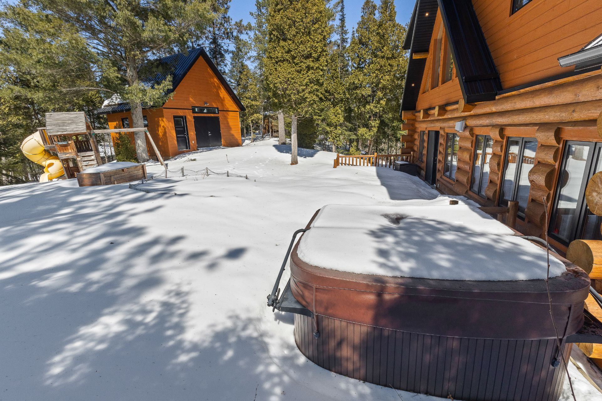Extérieur: La propriété est implantée sur un vaste terrain boisé de plus de 21 800 pi², offrant une intimité remarquable. La grande cour est un véritable havre de paix, idéale pour profiter des belles saisons. Le spa vous permettra de relaxer en toute tranquillité, dans un environnement naturel et apaisant.