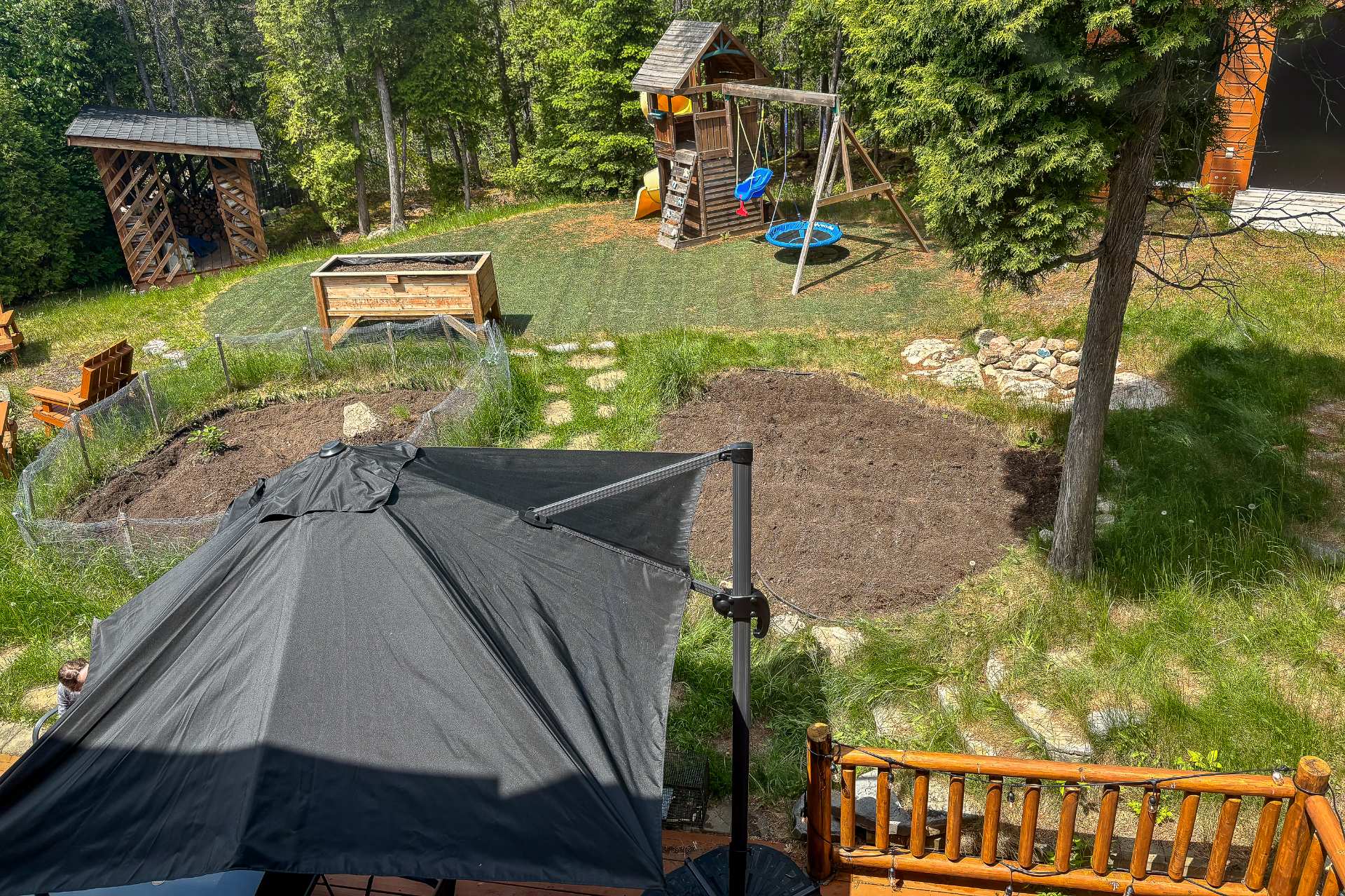 Inclus : Luminaires, pôles et rideaux, aspirateur central et accessoires (tuyau non fonctionnel), spa et accessoires (donnés sans garantie quant à leur qualité et à leur fonctionnement), module de jeux pour enfant, deux cabanes en bois pour enfant, banc extérieur en bois, lit escamotable au sous-sol, lave-vaisselle, four de la cuisine.